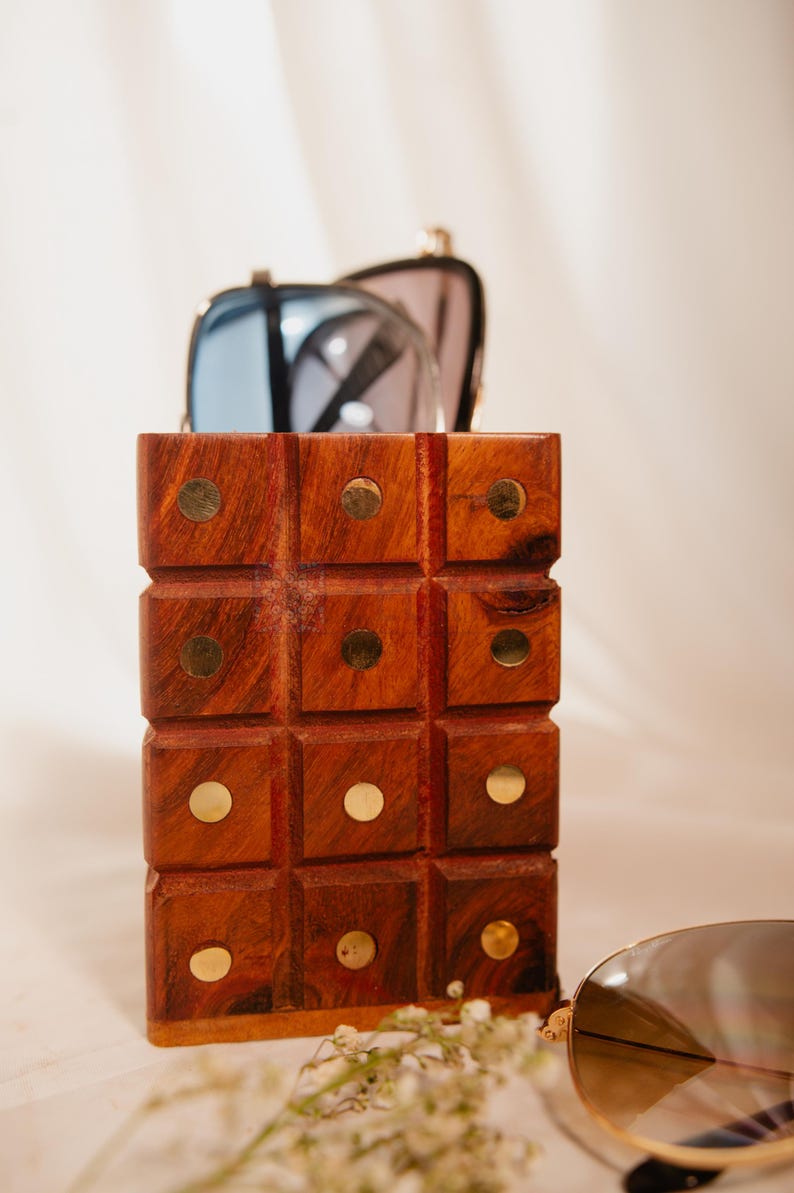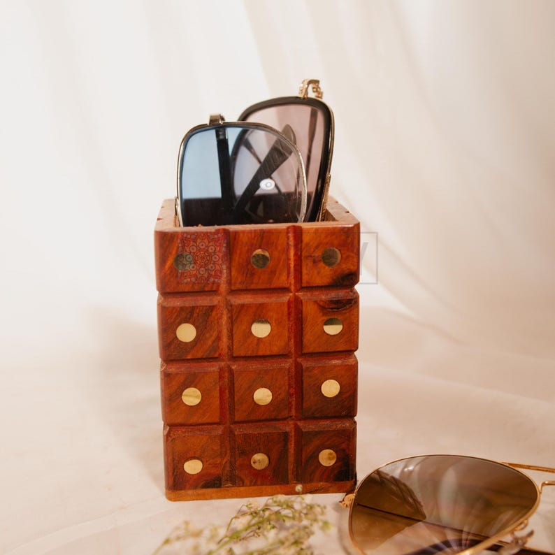 Are you tired of misplacing your sunglasses or having them scattered around your home? Keep your eyewear neatly stored and easily accessible with this beautifully handcrafted wooden sunglasses holder. Designed with both functionality and elegance in mind, this unique organizer is made from premium-quality rosewood, known for its rich color, durability, and timeless appeal.