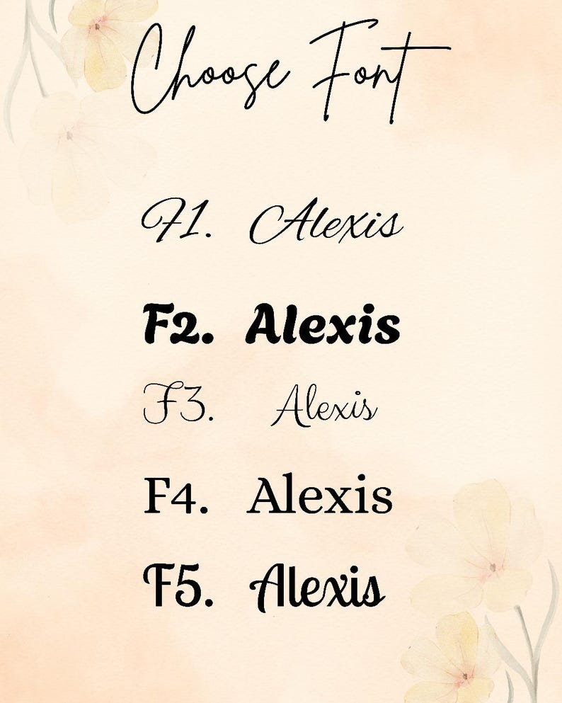 2. If you choose the "Font" option, select your preferred font number from the options and enter the name , date or text you’d like in the personalization text box, or feel free to message us directly. For example: ( F4 -“Where Smoke Meets Style" )