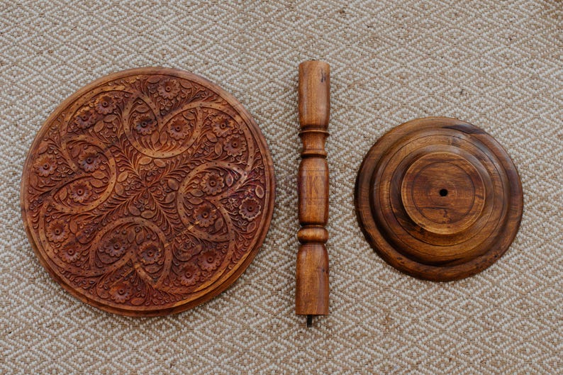 Elevate your living space with this exquisite round side table, a versatile piece of living room decor crafted from premium rosewood. This beautifully engraved wooden end table blends elegance with functionality, making it a perfect addition to any home decor style, from contemporary to farmhouse. With a compact size of 20 inches in height and an 18-inch diameter, this small end table fits seamlessly beside your sofa, armchair, or bed, offering both aesthetic appeal and practical surface space. The folding and assemble/disassemble feature ensures easy storage and versatility, allowing you to move and set up this side table wherever needed.