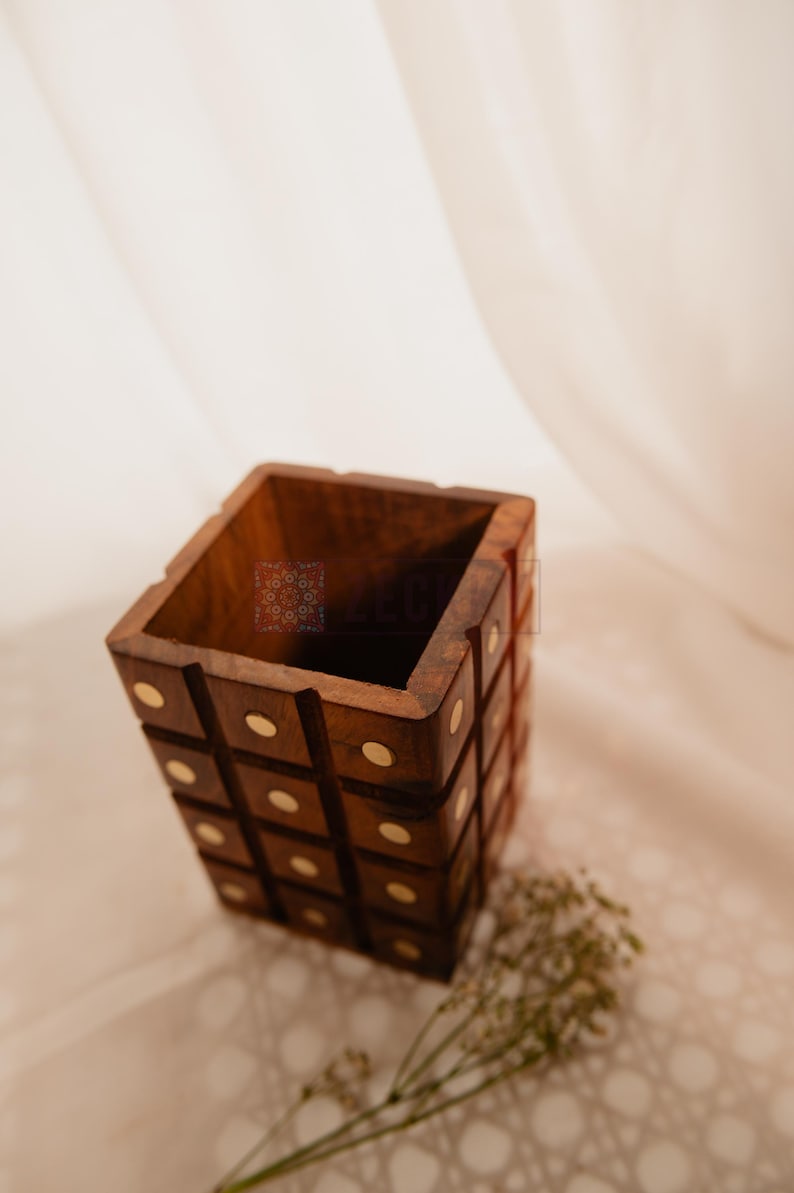 Place this wooden remote holder on your coffee table, side table, or entertainment center for easy access and an elegant aesthetic. The warm wooden tones blend seamlessly with any modern, rustic, or minimalist decor, while the brass inlays add a refined, artisanal touch.